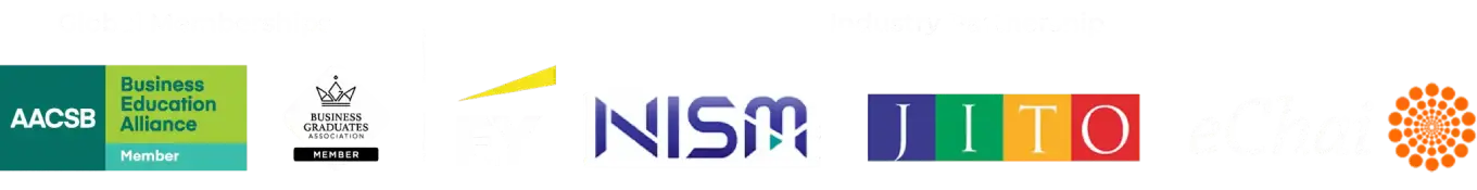 Our global memberships with AACSB and AMBA’s BGA network reflect our commitment to international quality standards in management education. Collaborations with EY, NISM, CII, JITO JIIF, and eChai further strengthen our mission of nation-building through education. With 670+ recruiters, 9800+ alumni worldwide, and a 100% digital & AI-enabled campus, NBS consistently nurtures leaders who drive corporates, scale startups, and create lasting social impact.