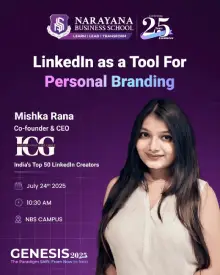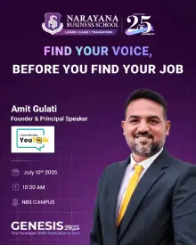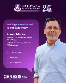 At Narayana Business School, our philosophy of Learn, Lead, Transform, resonates with India’s journey of growth, empowering students from Not only Metro but Non-Metro Cities of India to become catalysts of change. We nurture aspiring professionals to Learn with ambition, lead with resilience, and transform their aspirations into success. By bridging talent with opportunity not only in Corporates but, Startups and SMEs, we shape business professionals who rise to become leaders contributing to India’s evolving business and economic landscape in the world.