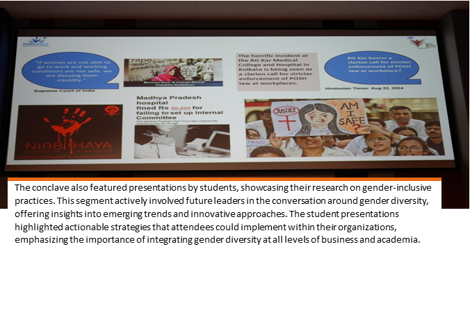 The NBS Conclave featured special addresses from thought leaders, including a deep dive into the PoSH Act, as well as panel discussions on gender diversity and real-world examples of overcoming workplace biases. The school’s commitment extends beyond hosting events—it actively engages students through mentorship programs, internships, and research presentations that aim to create a pipeline of diverse talent ready to lead.